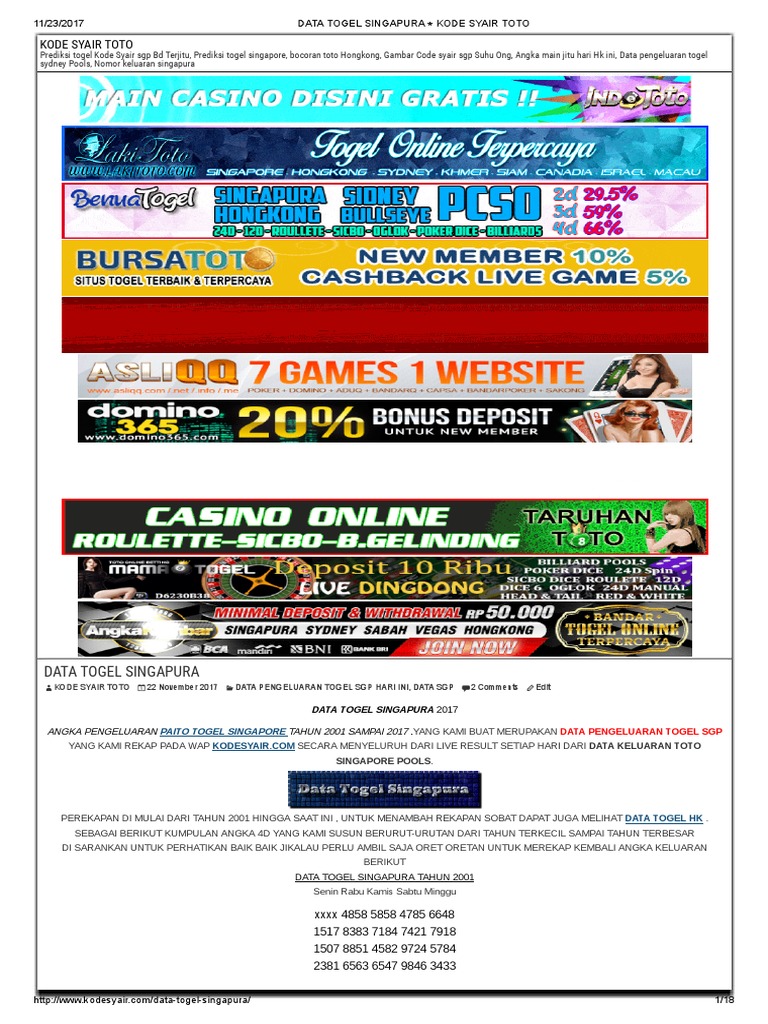Togel Master Data Pengeluaran Togel Sgp Tahun 1987 Sampai Sekarang Pdf
